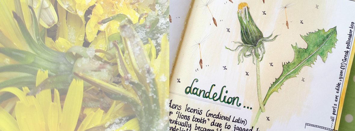 Botanical ink making is a sheer joy with each batch producing magical results. I tend to use food waste or plants that are past their best so that I am treading lightly with natural resources. I am very aware of the importance of dandelions as a potential source of food for bees and other pollinating insects during spring and so I make dandelion ink when many other flowers are in bloom and dandelions are plentiful.