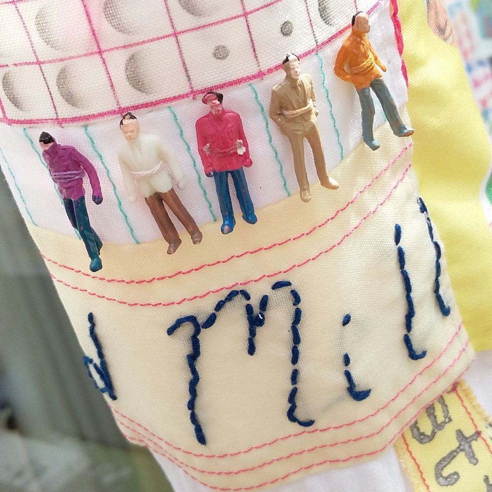 “Mills, Machines and Memories” celebrates the legacy of Mansfield’s textile industries. It takes the form of a permanent installation of hosiery created by Clare Taylor of Bus and Bird Arts and an accompanying film by John Slemensek of Bokehgo . The town’s textile heritage is represented by various items of hosiery, in the form of socks, tights and girdles of various shapes and sizes. Each item has the names, images and history of local mills and mill workers stitched, knitted and printed on to them alongside a stitched and printed record of conversations with workers from Mansfield’s textile factories. The imagery on the hosiery and the installation itself promotes conversation from visitors of all ages and acts as a collective memory of this treasured local industry.