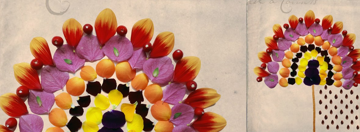 Step three – Once home, sort through your nature treasures and place into different coloured piles. Some flowers may have easy to remove petals, which is how we have created some of the rainbow layers.