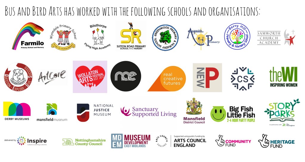 Bus and Bird Arts works with schools, early years settings, libraries, museums, local councils, arts organisations, festivals and private clients. To date we have been funded by and/or worked with: