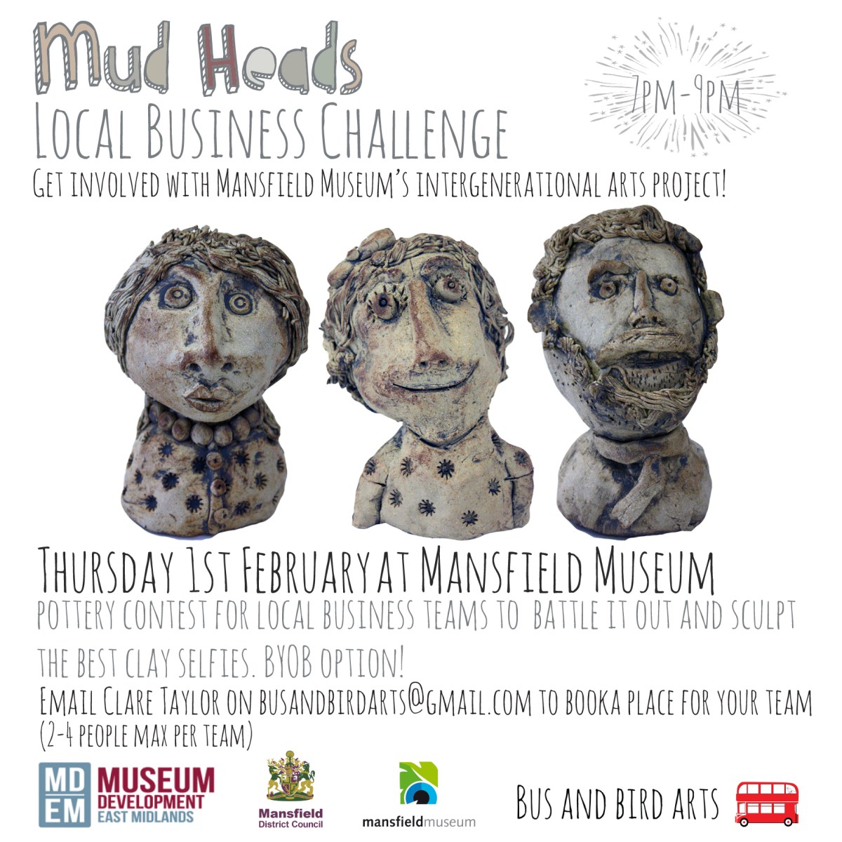 Team Building workshop for local businesses in Mansfield Previous Next Published February 27, 2021 at 1740 × 1740 in Workshops Team Building workshop for local businesses in Mansfield as part of an audience development project for Mansfield Museum. Pottery Contest for local businesses in Mansfield to battle it out and sculpt the best clay selfies! Like Loading...